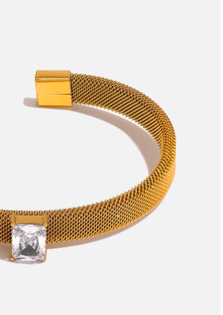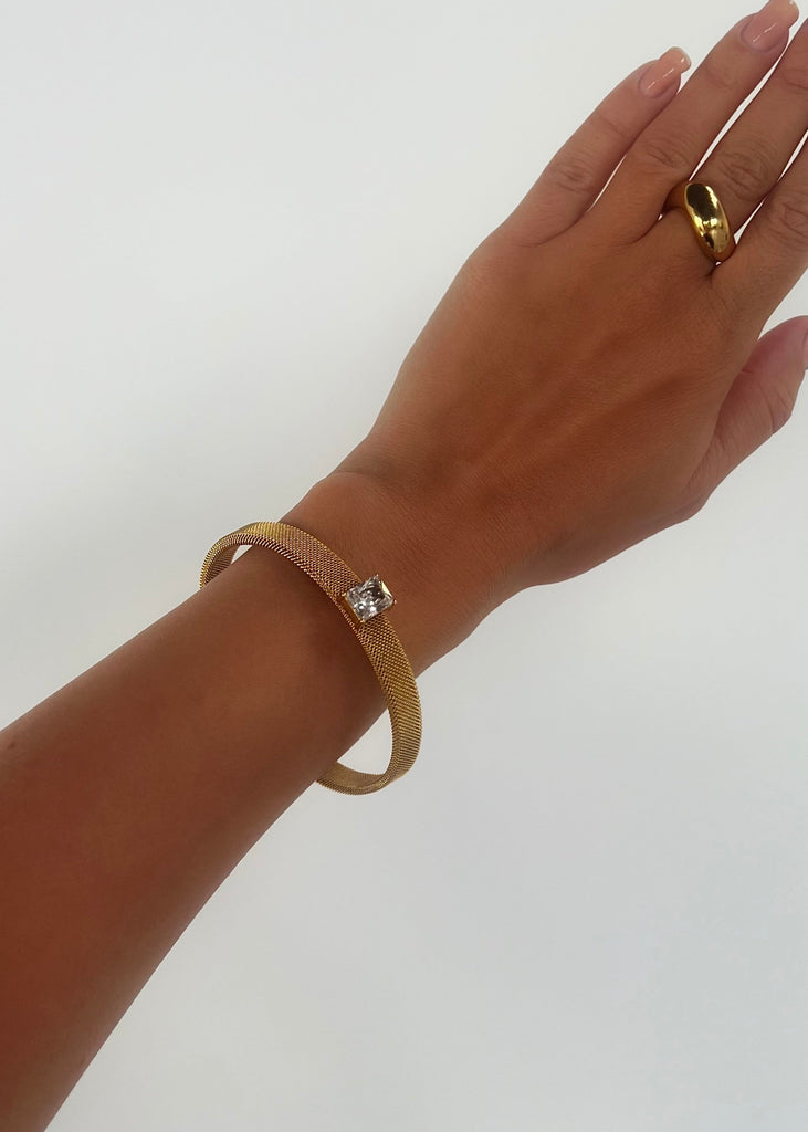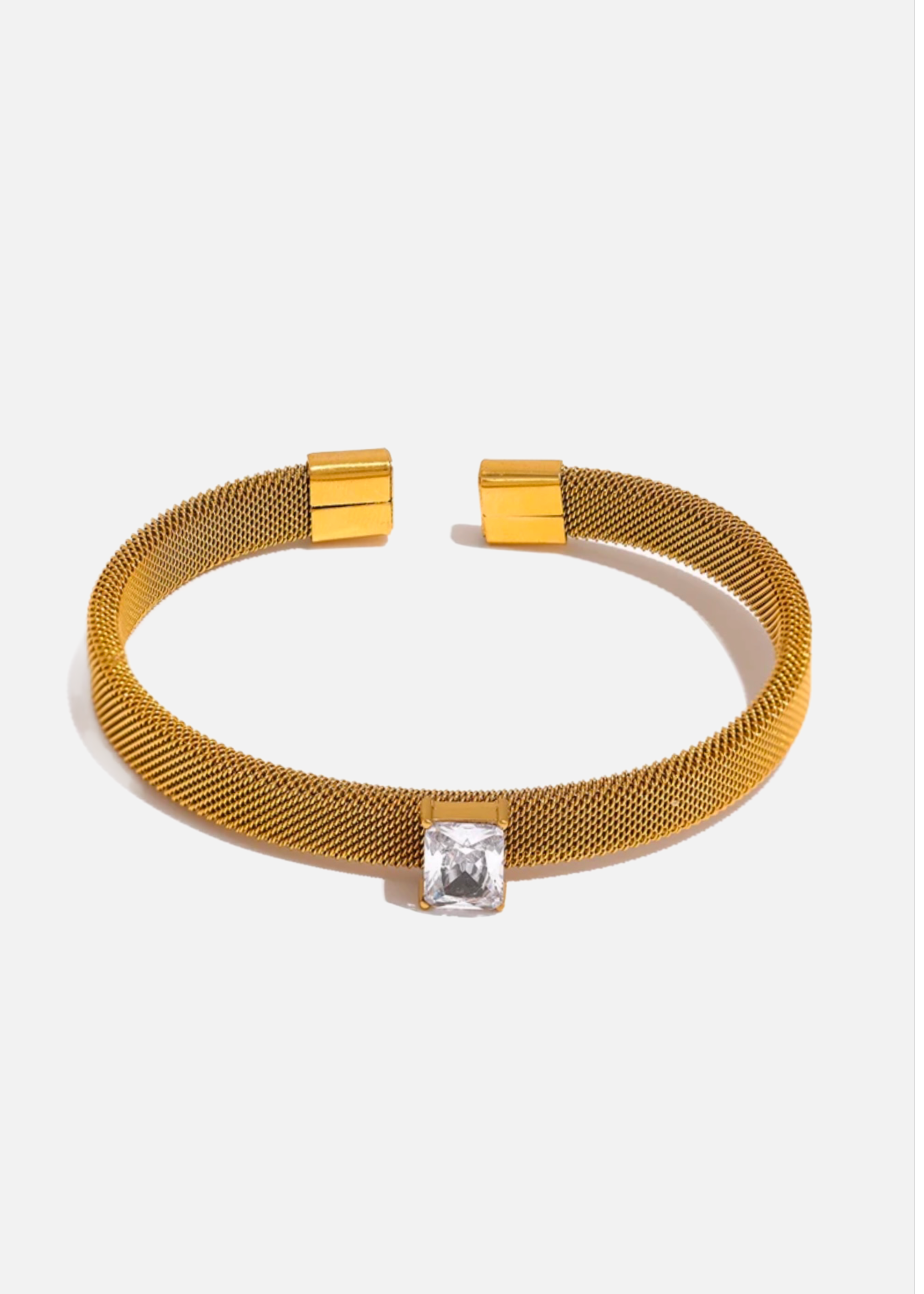 This bracelet is crafted with a luxurious 18k gold plating, offering a rich, warm glow that complements any skin tone. The bracelet features a sleek and modern design. The durable gold plating provides lasting beauty and resistance to tarnish.