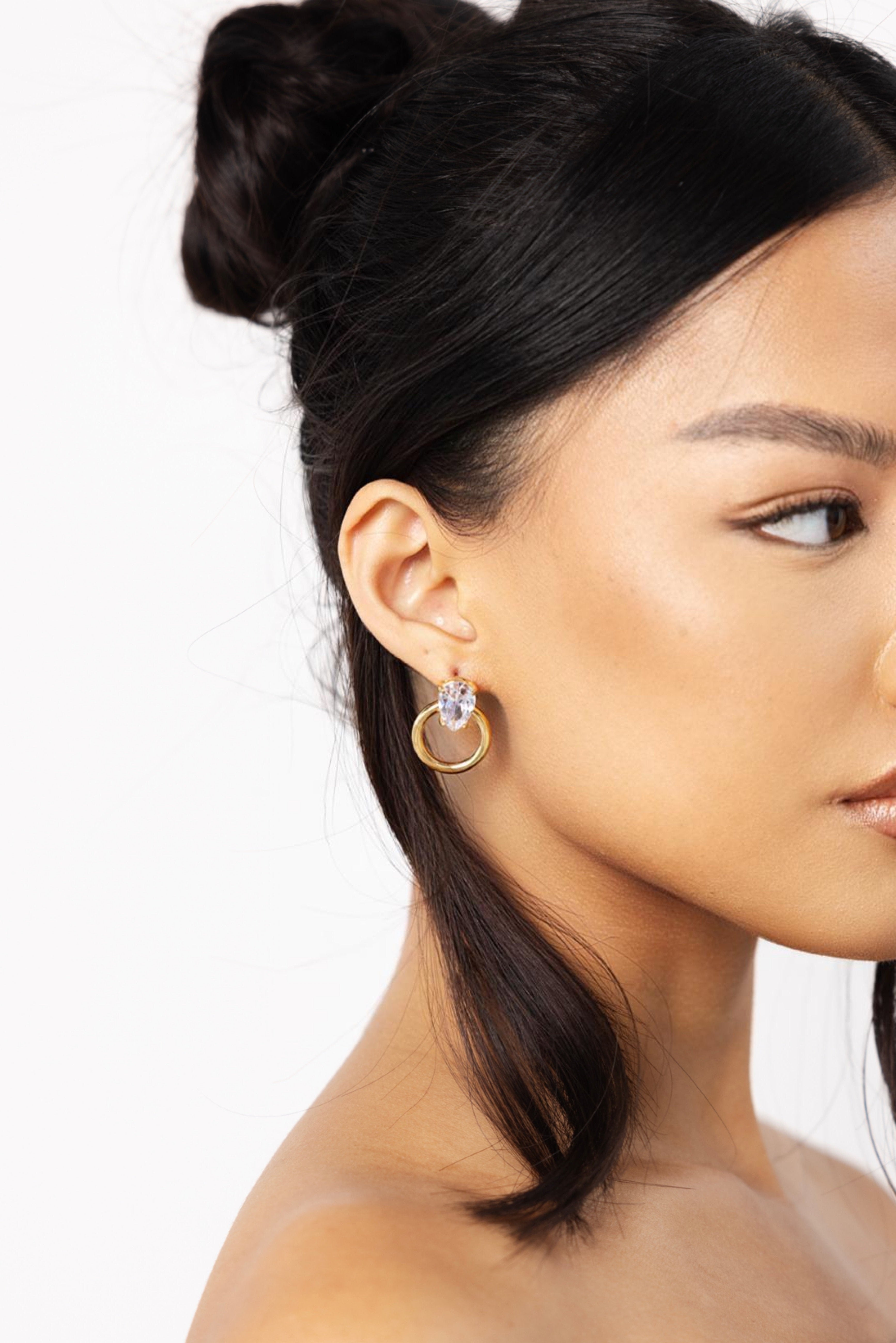 CER 18k Gold Plated Cubic Zirconia Mini Hoop Stud Earrings
