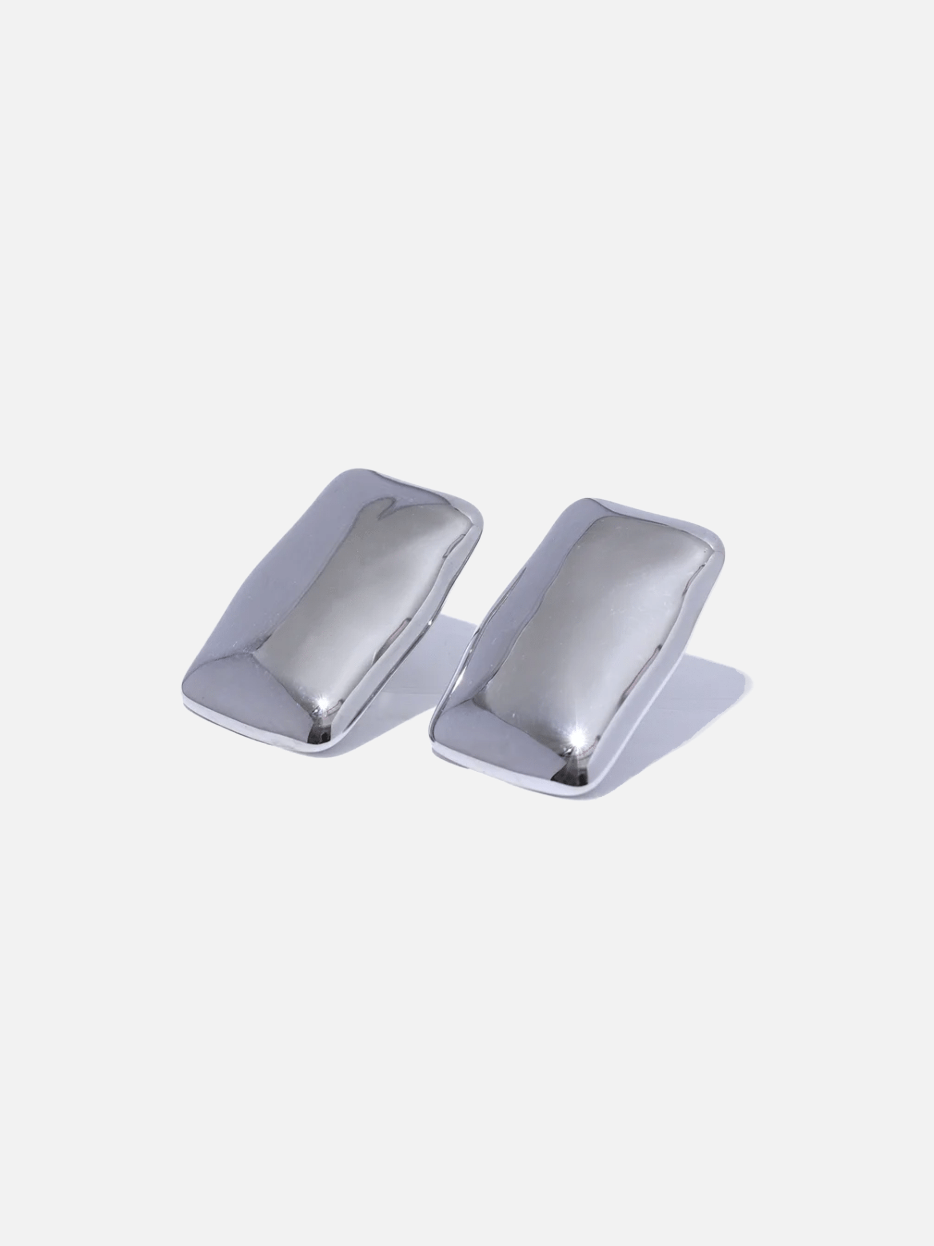 Silver 316L Stainless Steel Chunky Rectangle Stud Earrings