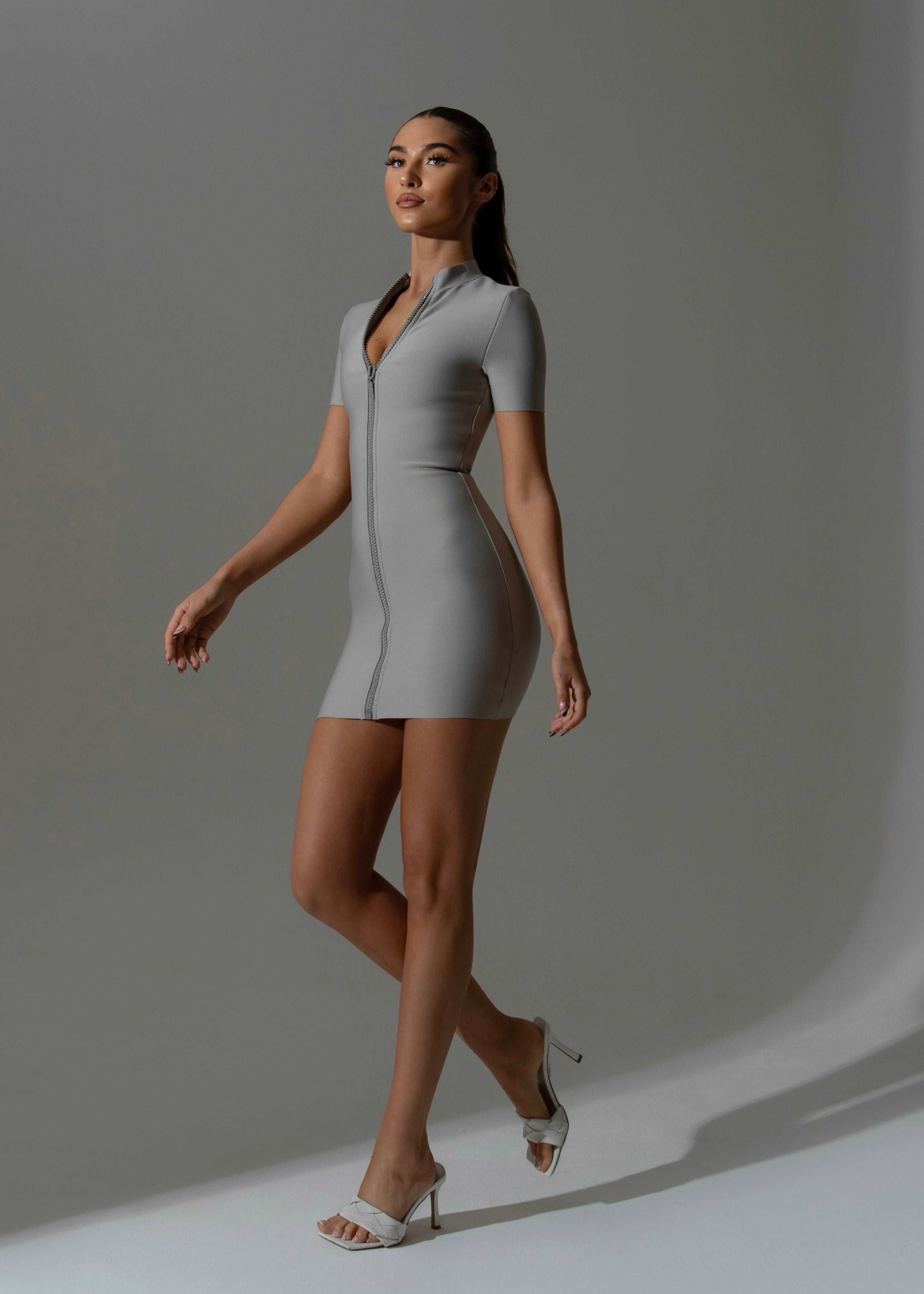 Our ARRIE bandage dress is a trend must-have! Featuring our exclusive stretch bandage fabric and diamante zip detailing.