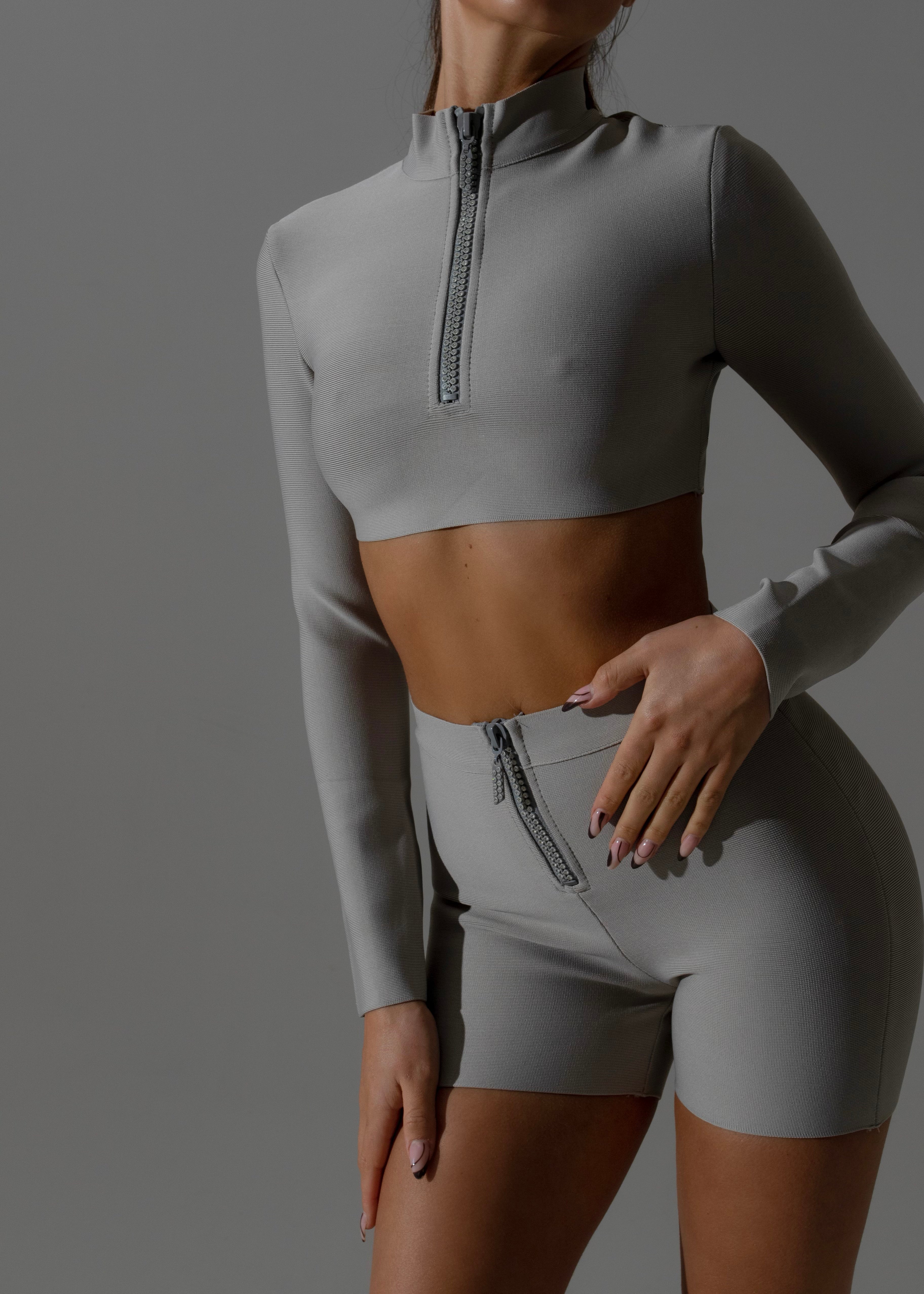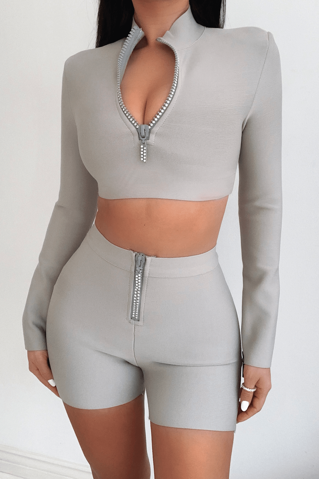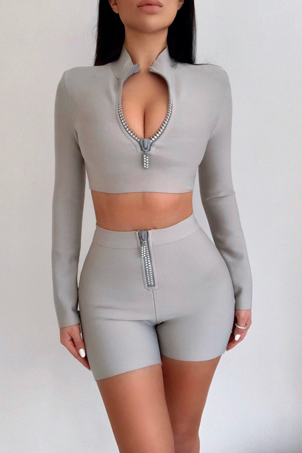 The Sienna Grey Bandage Two Piece Diamante Zip
