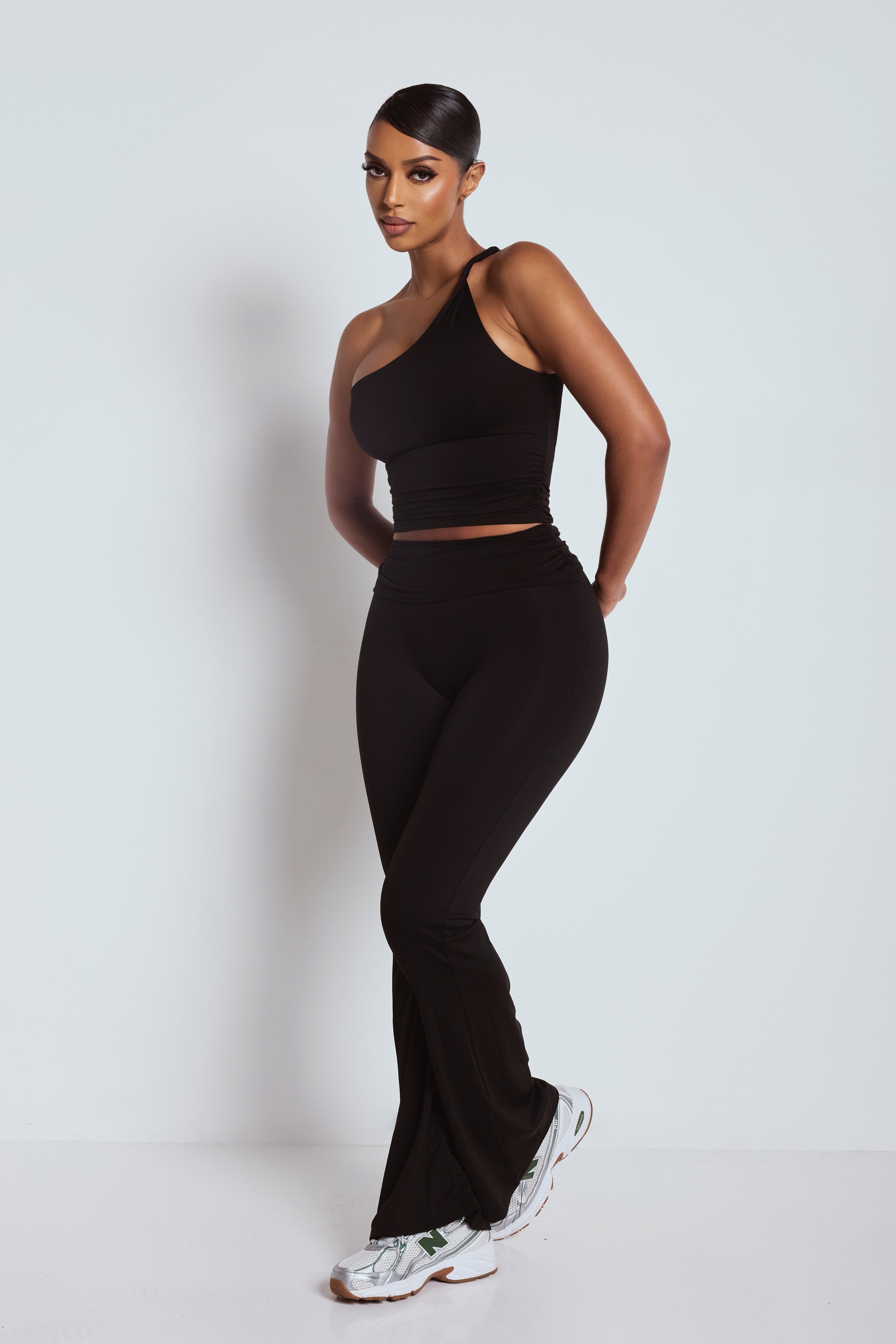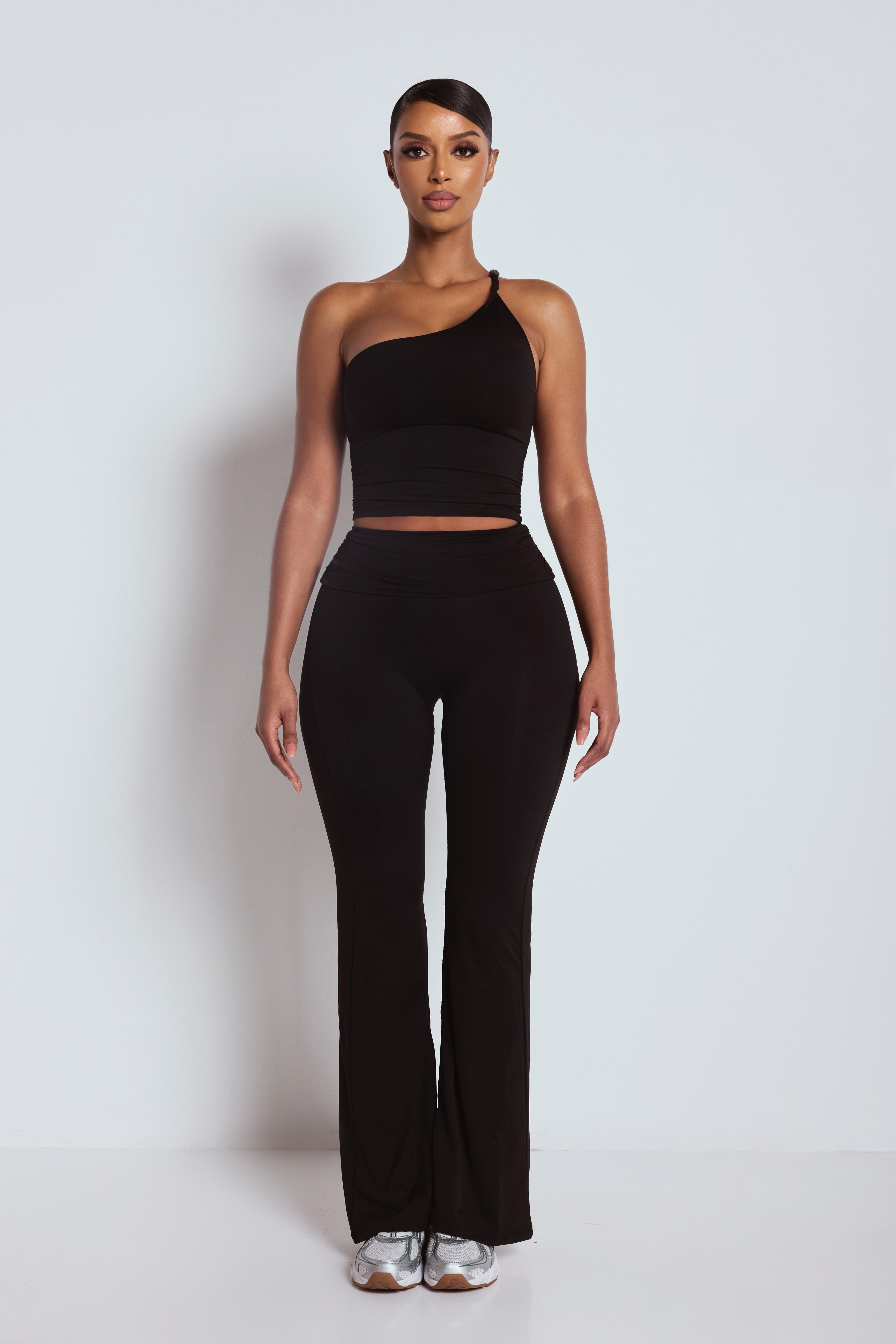 The Black Foldover Flare Leggings