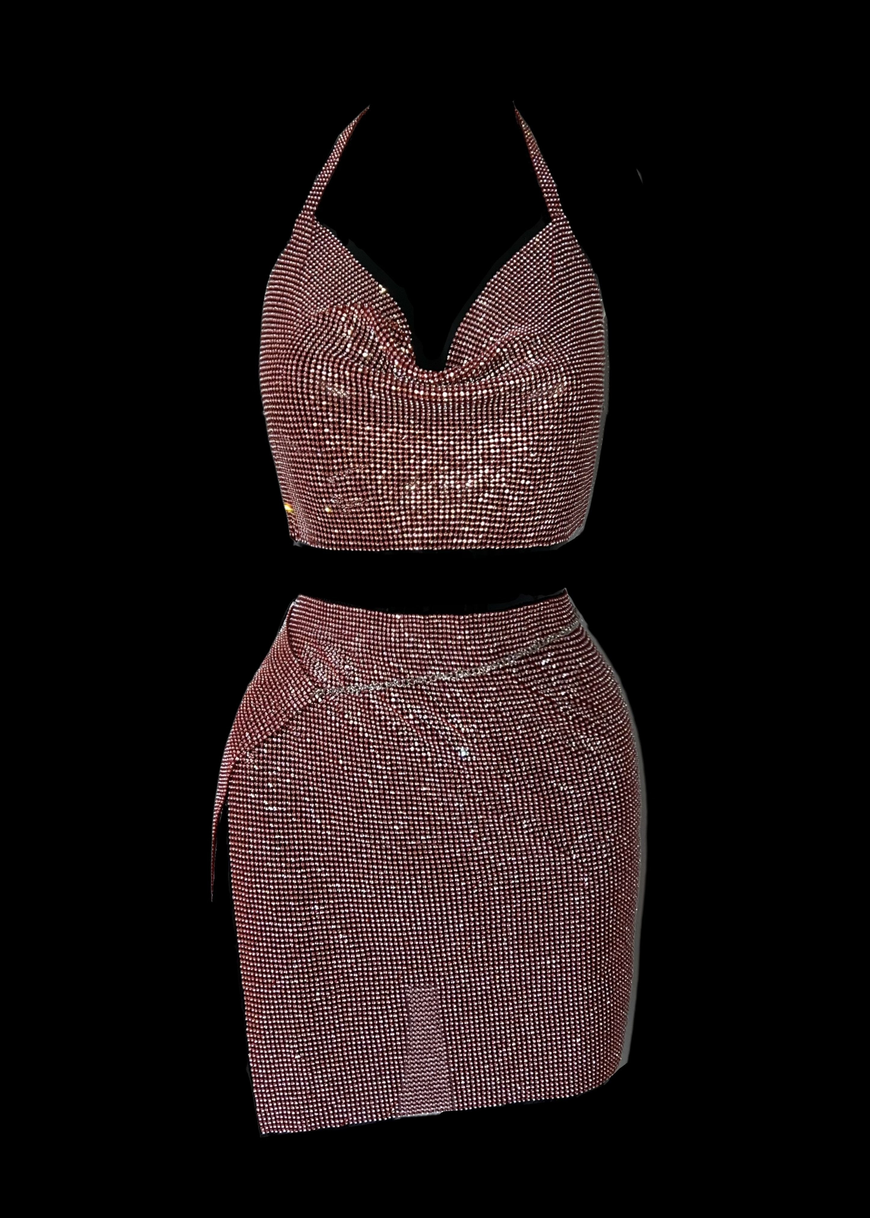 Sophisticated and sexy is what our IRINI chainmail set has to offer this party season! Featuring a Red chainmail material and a cowl neckline.