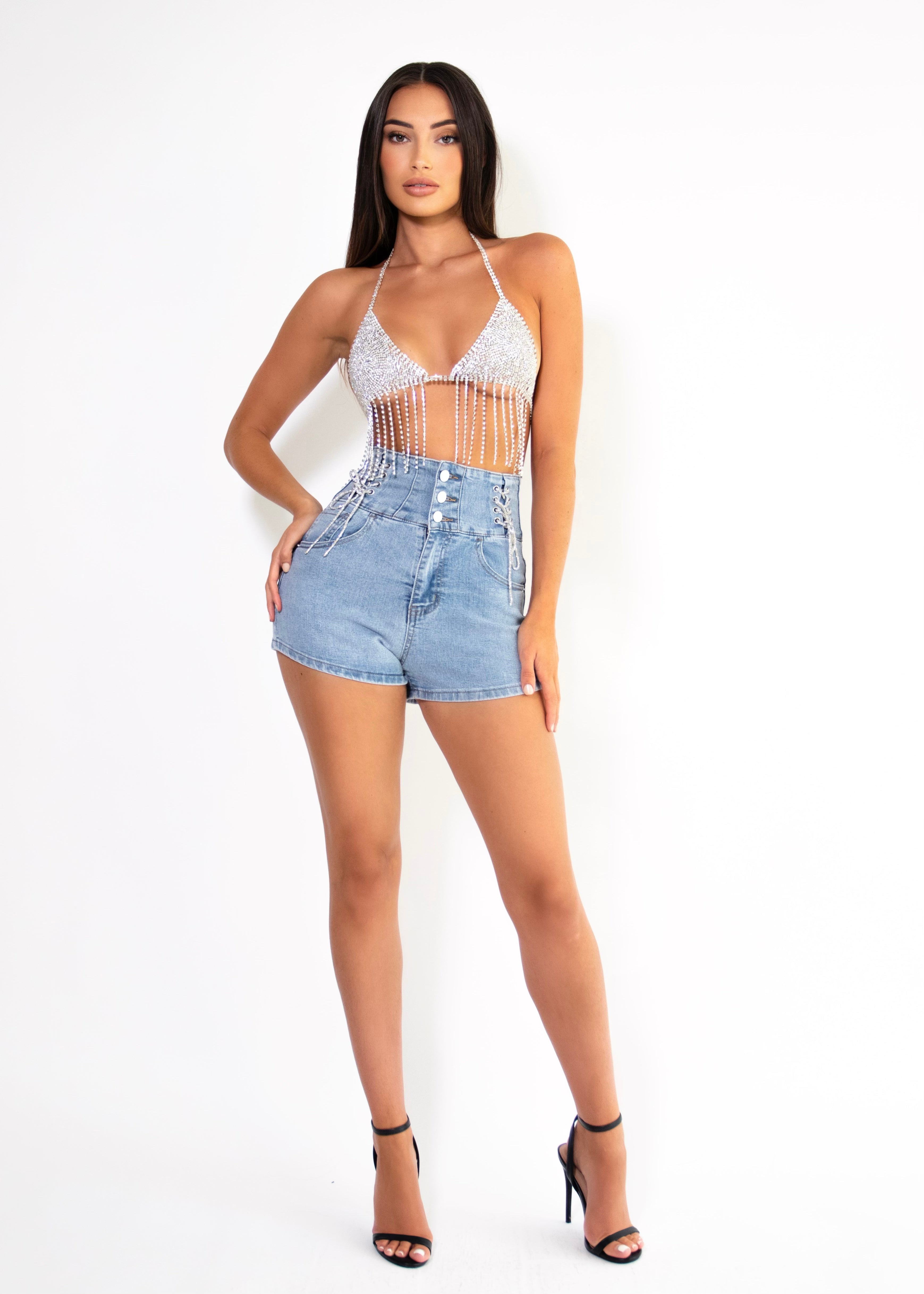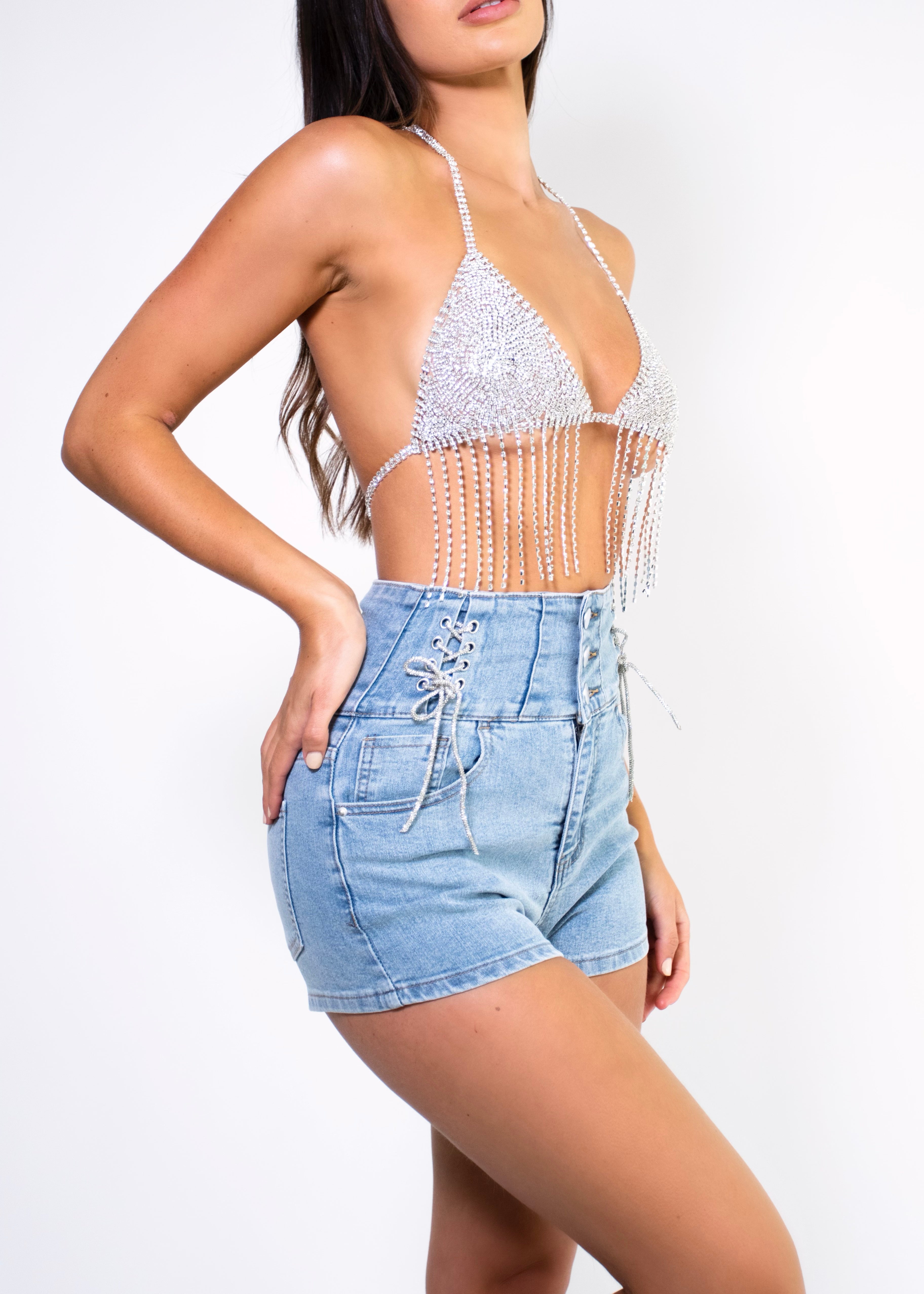 THE IVY DENIM DIAMANTE SHORTS